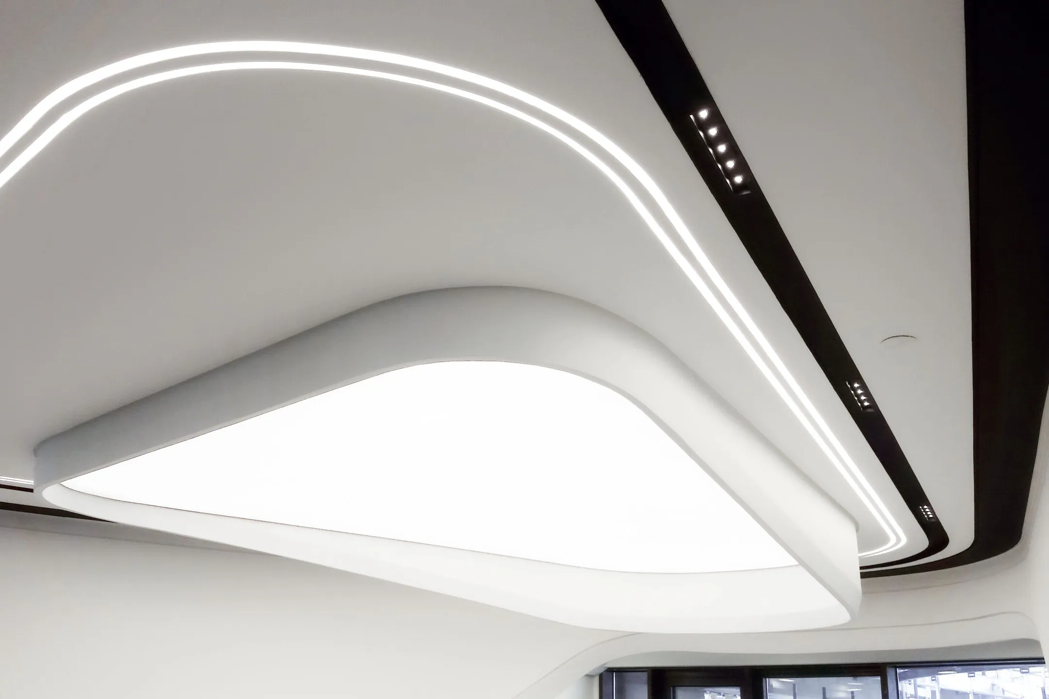 The Tavani Stretch system is not just a ceiling solution. It’s a modern design element that can be adapted to create innovative wall coverings and floating panels for modern homes, retail locations, and exhibitions. Its adaptability, demonstrated by its perimeter track and lightweight fabric membrane, ensures that it can be tailored to your unique design needs.